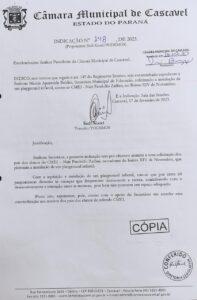 Solicita a secretaria municipal de educação, a instalação de um playground infantil no CMEI – NAIR PANDOLFO ZAFFARI.