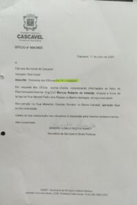 Oficio 115/2023 e resposta- solicitando operação tapa buracos no bairro Canadá.