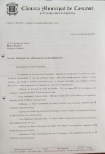 Oficio 130/2023 ao Deputado Estadual Marcio Pacheco, solicitando recursos financeiros para várias obras.