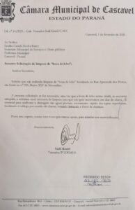 Oficio 14-2023 – Limpeza de boca de lobo, rua Aparecida dos Portos, 326.