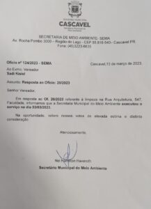 Oficio 20-2023 e resposta- Solicitação de roçada e limpeza no Bairro Faculdade