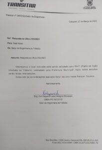 Oficio 53-2023 e resposta- estudos para viabilidade de implantação de redutor de velocidade na Rua Jacarezinho, São Cristóvão