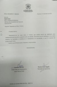 Oficio 77-52023 e resposta- solicitação de estudo para viabilidade de readequação de estrada rural de Vista Alegre